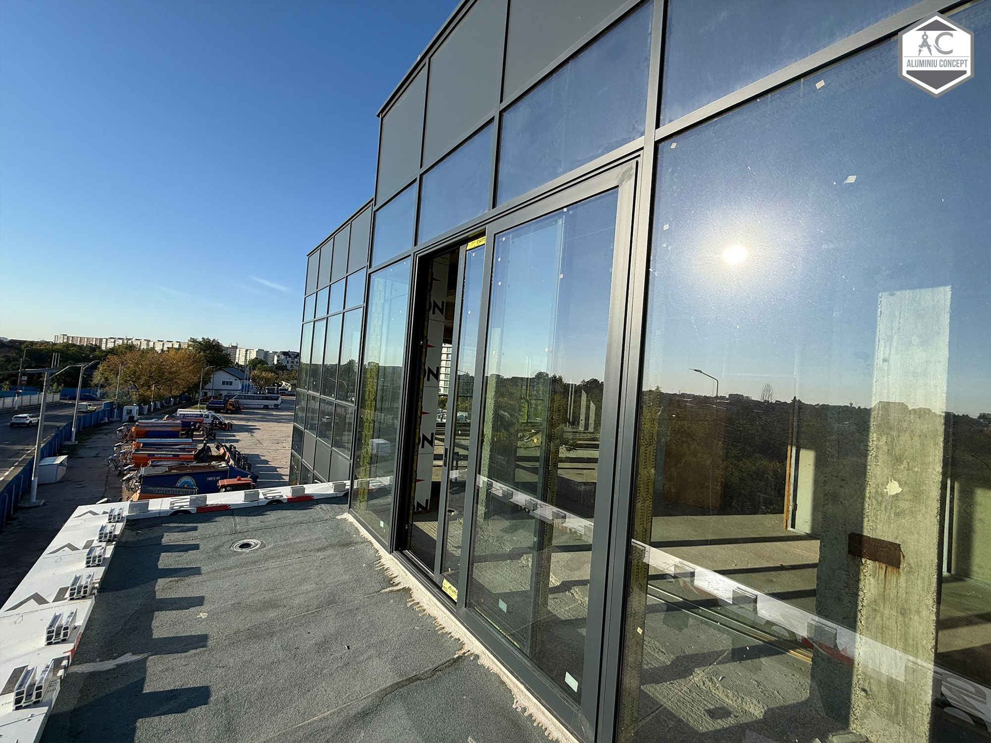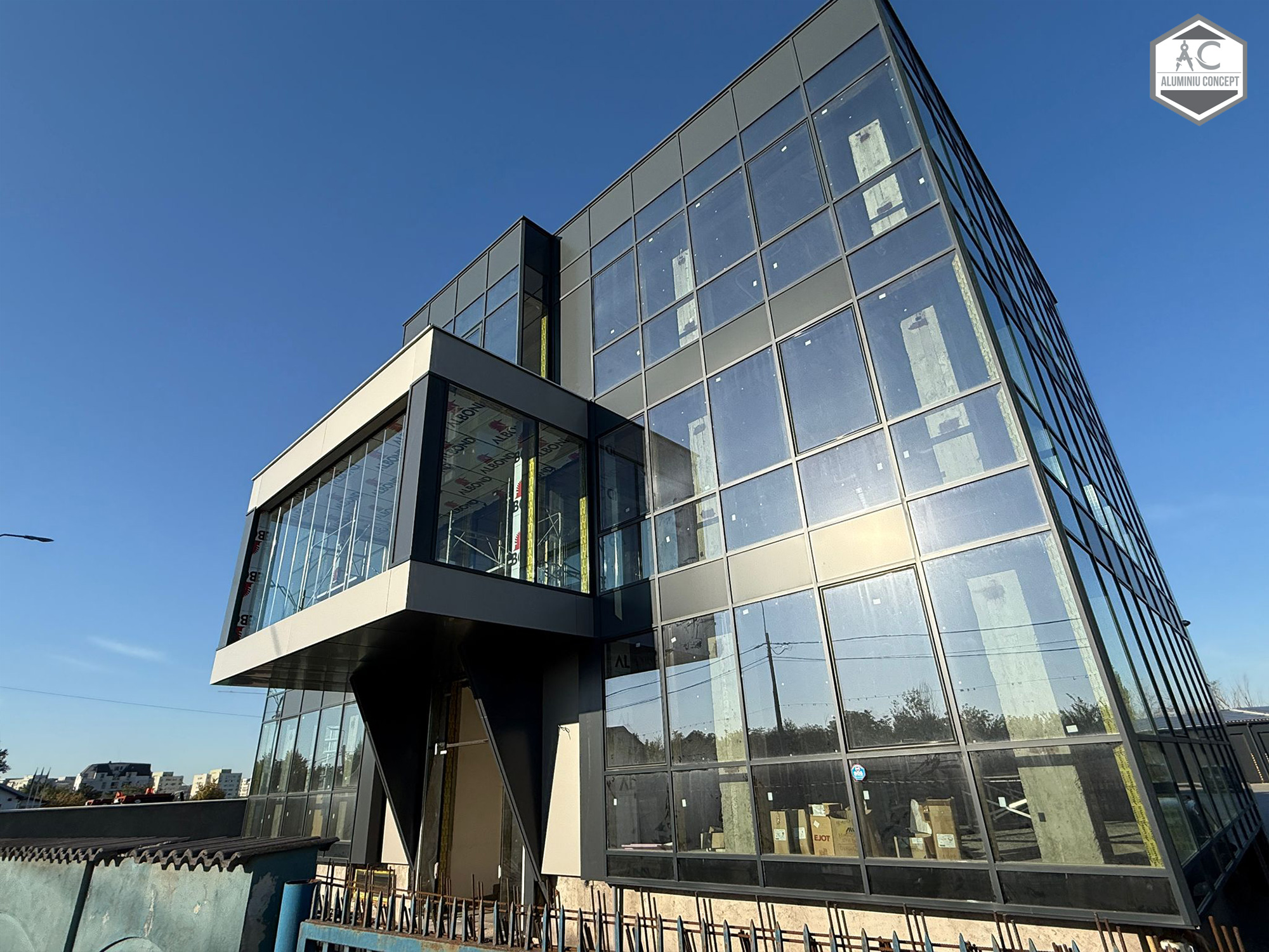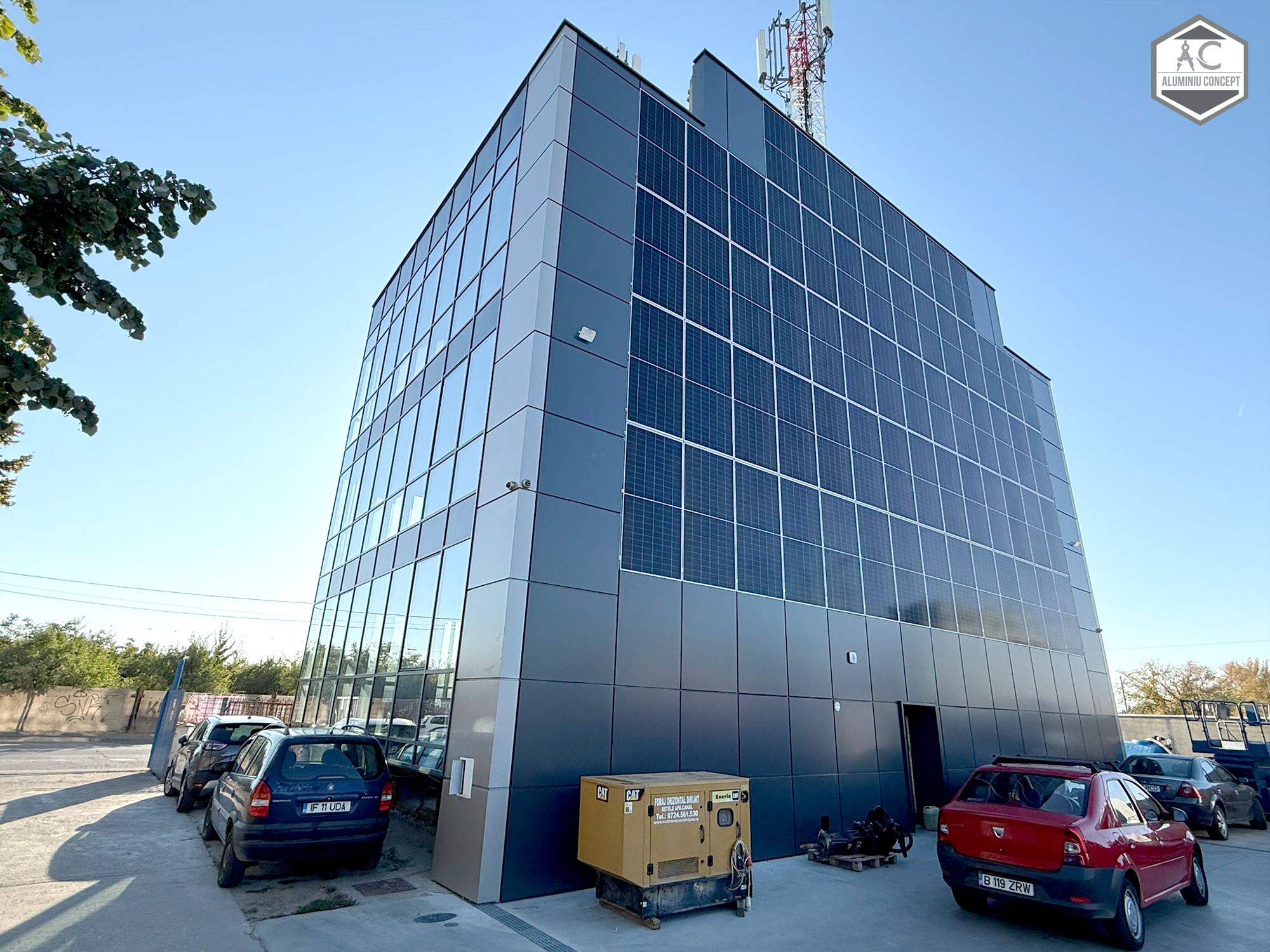 Este un sistem de perete cortină cu dublă placare - o soluție specială pentru clădirile bioclimatice.