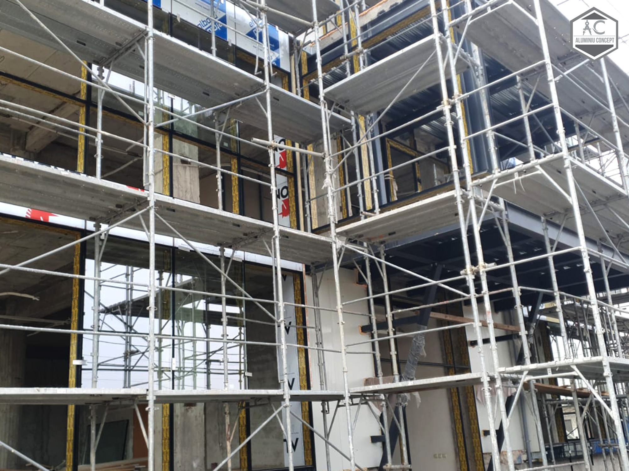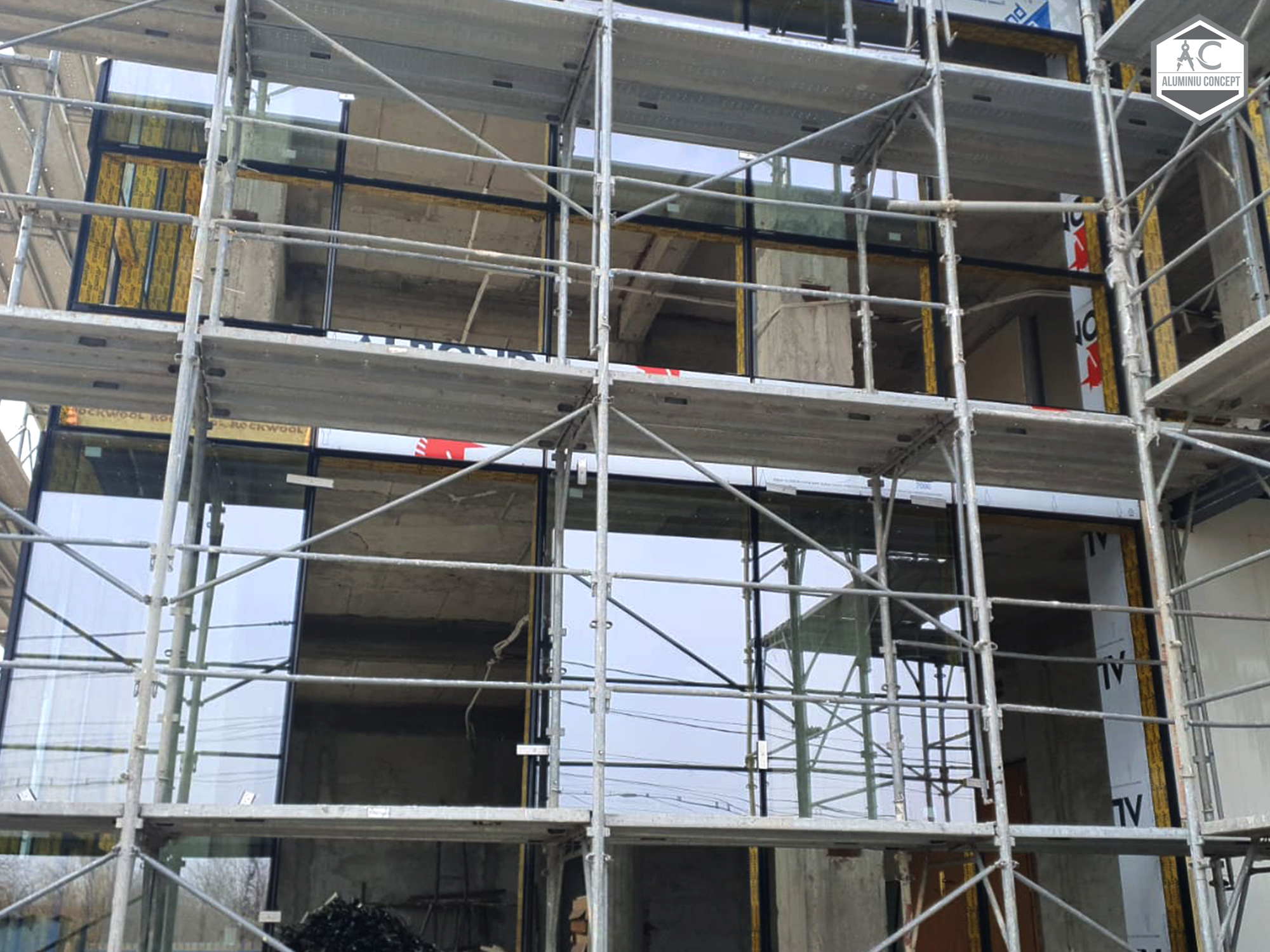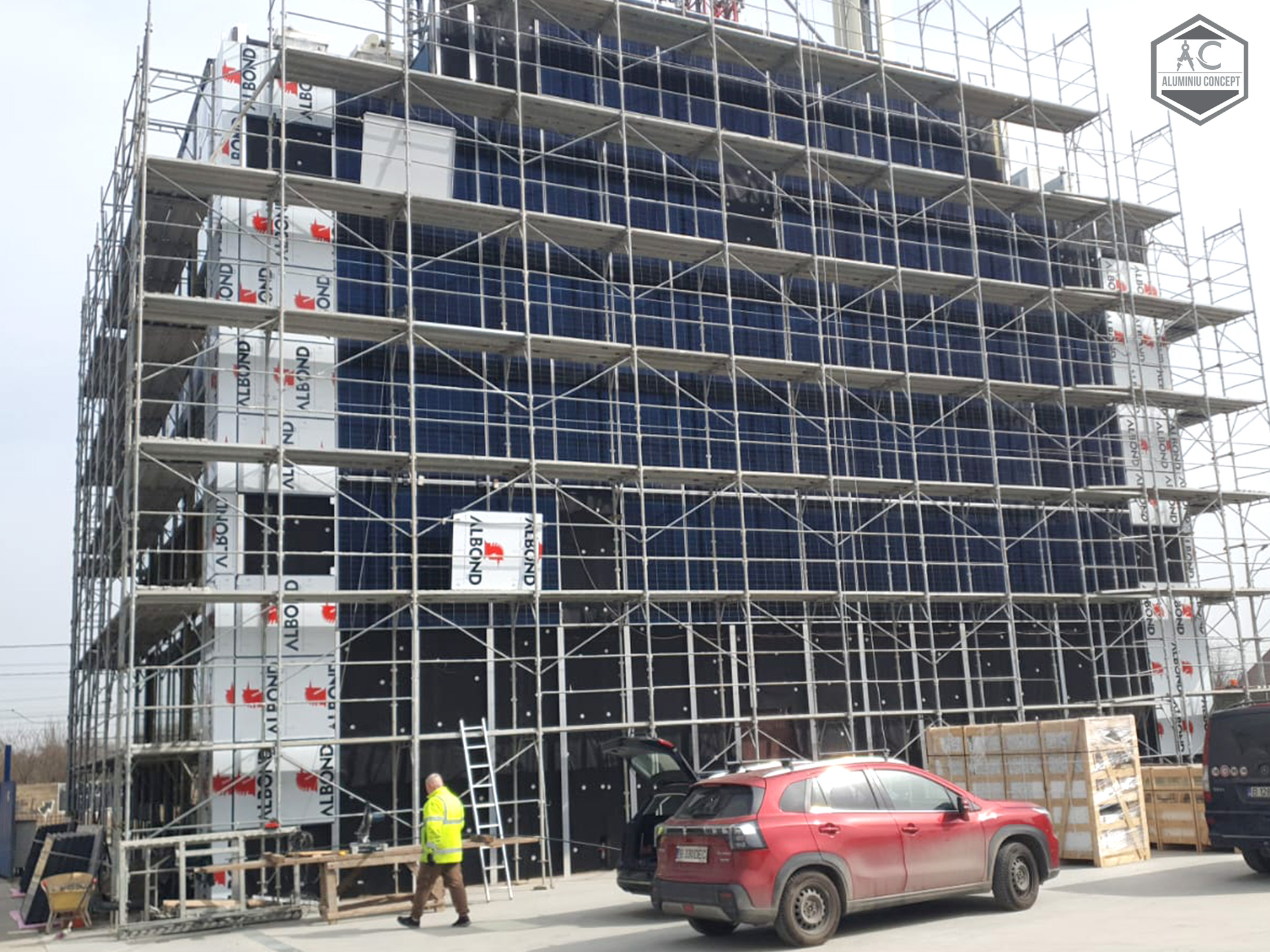 Este un sistem de perete cortină cu dublă placare - o soluție specială pentru clădirile bioclimatice.